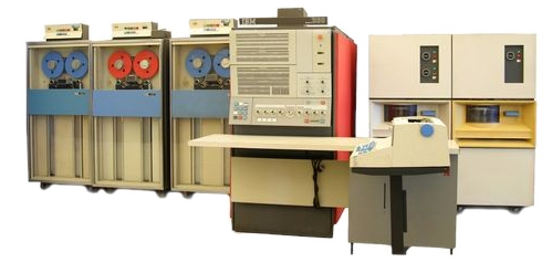 Dans les années 1960 et 1970, les ordinateurs existent bien entendu depuis longtemps, mais ce sont des monstres complètement confinés dans des centres de calcul. L'image représente un IBM360 annoncé en 1964.1).