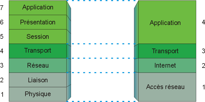 Le modèle OSI définit sept couches. TCP/IP est basé sur le modèle DOD, qui ne comporte que quatre couches, mais en cohérence avec le modèle OSI.